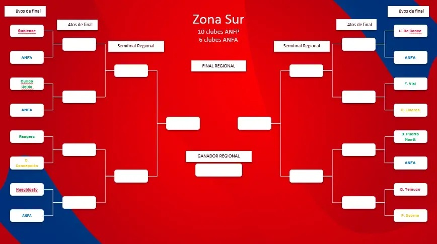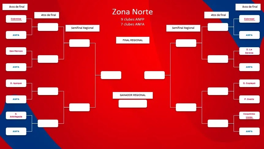 Según el citado medio en total serán 65 equipos, 46 de la ANFP y 19 de la ANFA, que se dividirán en las zonas norte, centro norte, centro sur y sur.